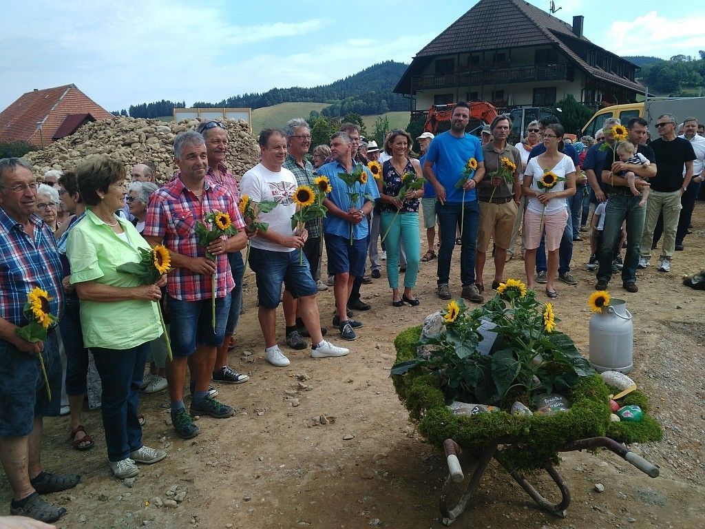 Am 28. Juli 2018, feierte die Gemeinde Oberried die Grundsteinlegung im Ursulinenhof. Vor vielen interessierten Bürgern mauerten Bürgermeister Klaus Vosberg und Architekt Peter Ritter, moderiert vom BGO-Vorsitzenden Franz-Josef Winterhalter eine Zeitkapsel ein. Am festlichen Programm der Grundsteinlegung beteiligten sich auch die Alltagsbegleiterinnen der BGO mit selbst gestalteten Sinnsteinen, welche einen Platz auf dem künftigen Ursulinenhofgelände finden sollen. Die Vorstandschaft der BGO brachte ihren Dank dem Gemeinderat und dem Bürgermeister gegenüber mit der Überreichung von Sonnenblumen zum Ausdruck.
