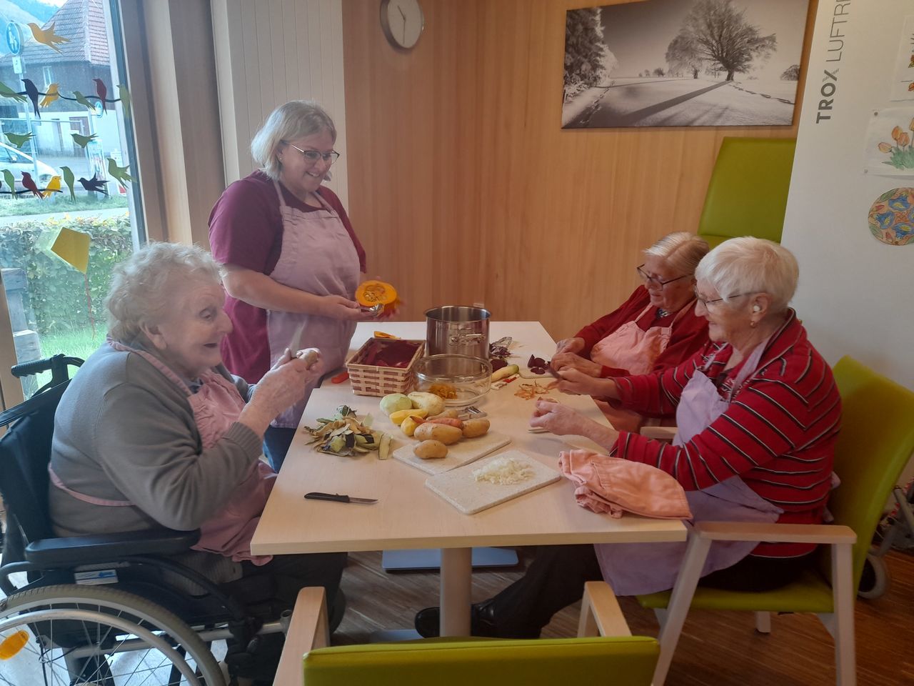 Die Tagespflege für 16 Personen wurde im Januar 2020 im Ursulinenhof eröffnet. Sie älteren Menschen Betreuung, Unterstützung und soziale Kontakte und entlastet pflegende Angehörige. Die Tagespflege ist eng in die Dorfgemeinschaft eingebettet – Angehörige, Mitarbeitende und Tagesgäste kennen sich zum Teil schon über Jahre. Wichtig ist uns eine vertrauensvolle Atmosphäre, die Grundlage unserer Arbeit in der Tagespflege ist. Gemeinsam sorgen wir dafür, dass alle gut versorgt sind und sich wohl fühlen.