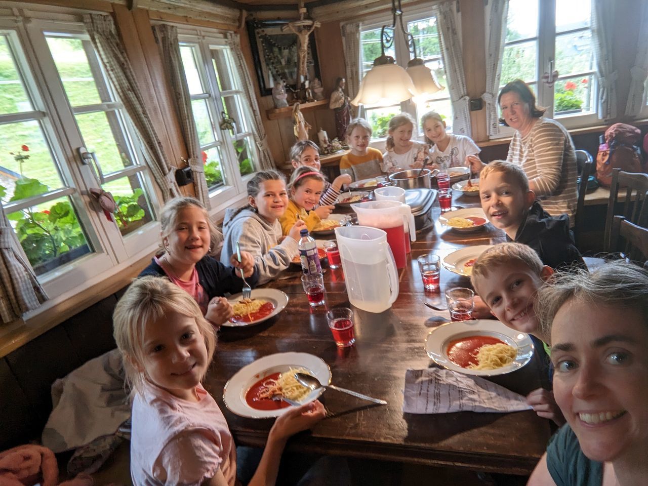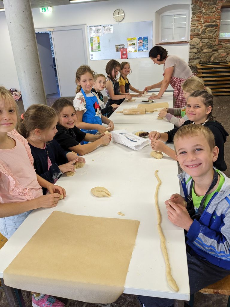Am ersten Tag wurde der Altenvogtshof im Vörlinsbach besucht. Bei einer Mühlenbesichtigung lernten die Kinder, wie Getreide gemahlen wird und welche Produkte dabei entstehen. Außerdem wurde aus nur vier Zutaten Spaghetti selbst hergestellt. Der Geschmack frischer Nudeln konnte alle überzeugen, sodass die Vorfreude auf den nächsten Tag gerade noch größer wurde.